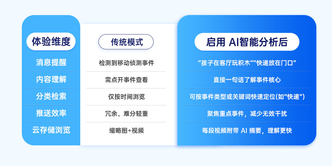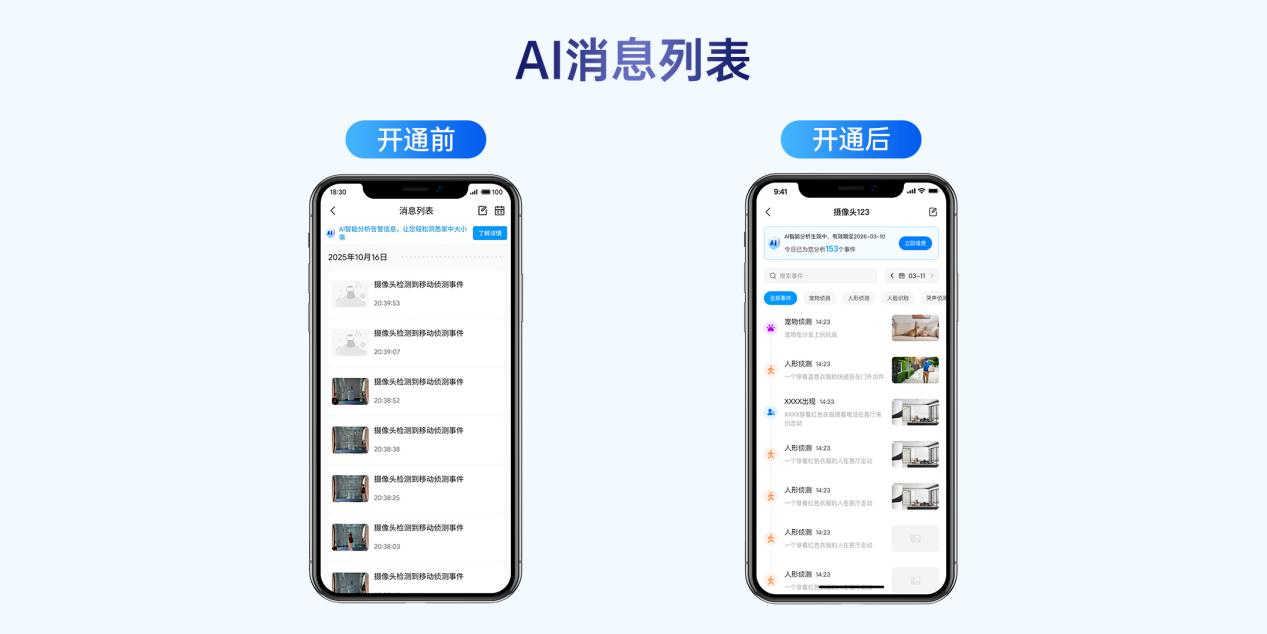 譬如“【人形侦测】一个穿着白色衣服的人在客厅走动”。这意味着,用户无需查看监控画面即可迅速掌握家中动态,省去查询海量信息的时间。关键信息快速直达也能帮助用户迅速判断情况、采取行动,显著提升突发事件的响应效率。