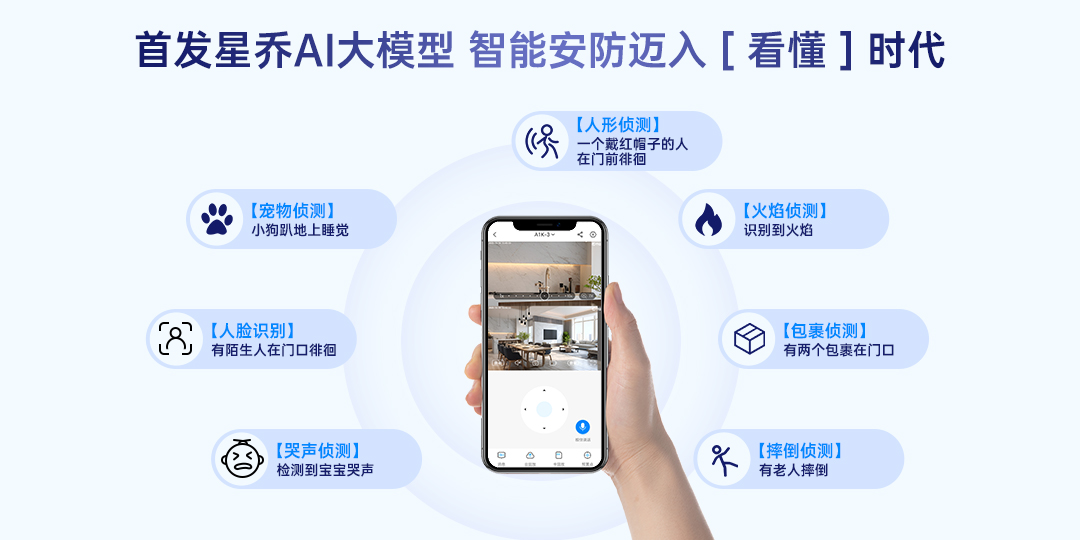 星乔大模型,让摄像头看懂世界 依托自研AI技术,乔安摄像头不仅能“看见”家中画面,更能真正“理解”每一个生活瞬间。未来,结合用户反馈机制,星乔大模型将持续优化识别准确率与表达逻辑,逐步进化为“家庭专属安防智能体”:一方面优化拓展模型能力;另一方面通过更主动的预警保护,让家庭安全更有保障,让 “预见安全” 成为日常。